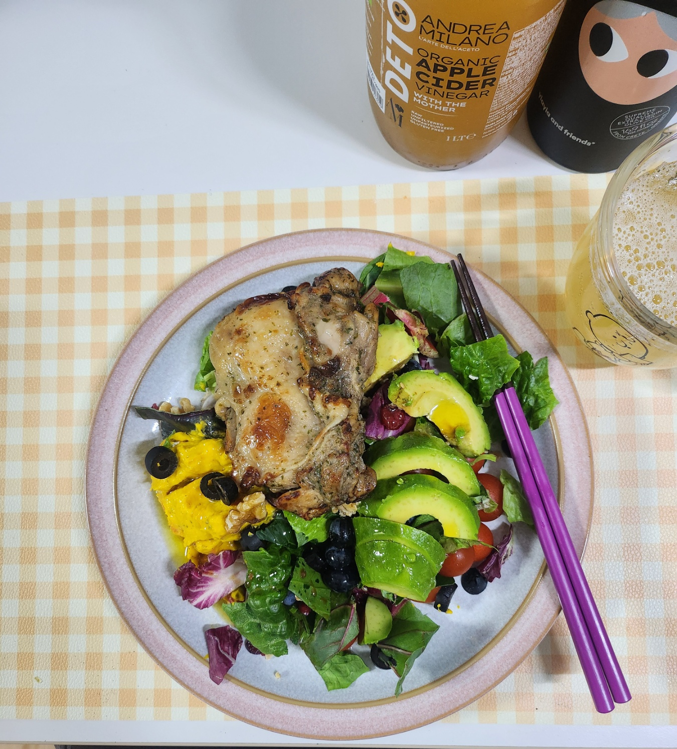 - 닭다리살은 바삭하게 구워 단백질 보충하고 아보카도와 올리브유로 좋은 기름 함께 먹고